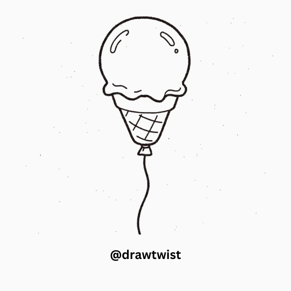 Draw a round shape for the ice cream scoop. Under it, draw a triangle for the cone. Add a string from the bottom of the cone. This balloon looks fun and tasty and kids enjoy coloring it.