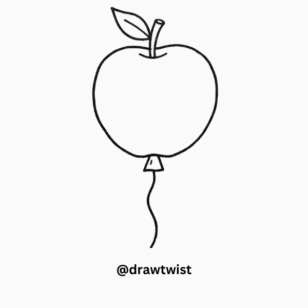 Draw a round apple shape. Add a small leaf on top. Draw a string at the bottom. Keep the apple simple. Kids can easily recognize this shape and enjoy drawing it.