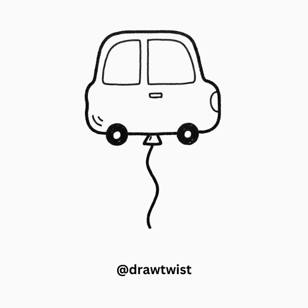 Draw a simple rectangle for the car. Add two small circles for wheels. Draw a string from the bottom. Keep the car very simple so kids do not feel confused.