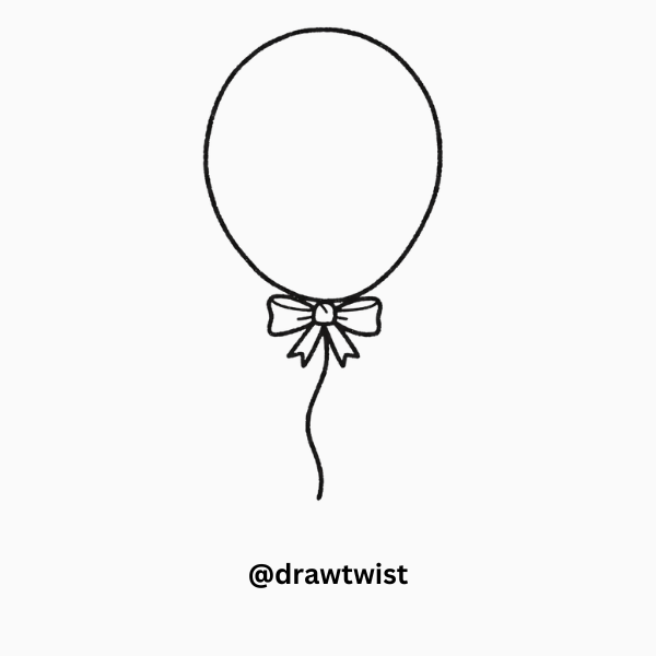 Draw a simple round balloon. At the bottom, draw a small bow. Add a string under the bow. This balloon looks cute and decorative without being hard.