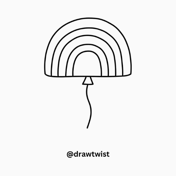 Draw a half circle. Inside it, draw curved lines. Add a string below. This balloon feels colorful and cheerful and is easy to draw.