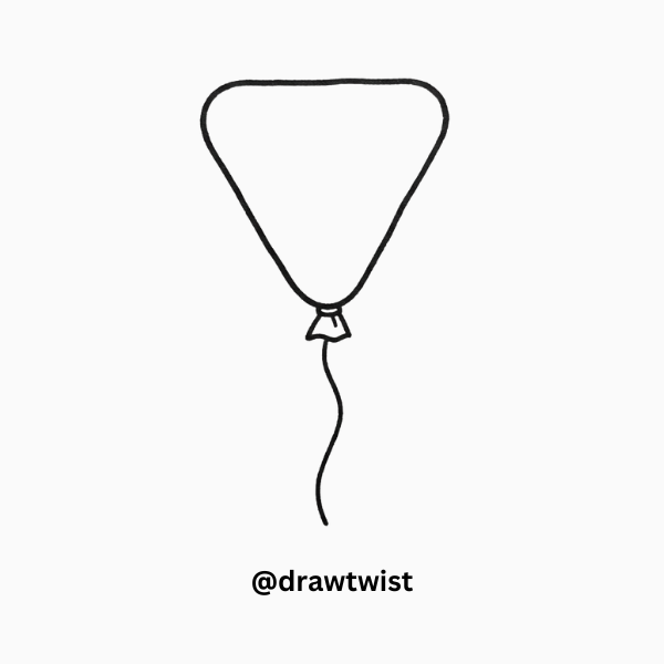 For the triangle balloon, the child draws three lines that connect to form a triangle. The corners should not be sharp. Add a small knot at the bottom and draw a string. This balloon is great for learning shapes while keeping drawing simple.