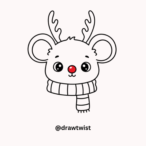 Draw a tiny mouse with antlers. Kids can give it a red nose or a scarf for a festive twist. This doodle is simple and cute, perfect for combining small animals with Christmas details.