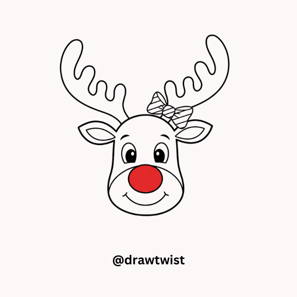 Create a simple reindeer face with big antlers and a shiny red nose like Rudolph. Add tiny stars or snowflakes around it. You can draw a smiling mouth and little round ears. Kids can also add a scarf or a bow on one antler for a fun twist. This drawing is simple because it mostly uses circles and curves.