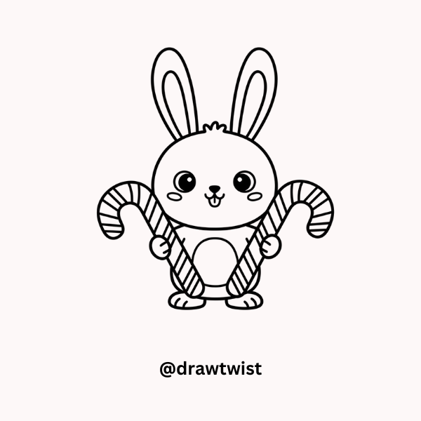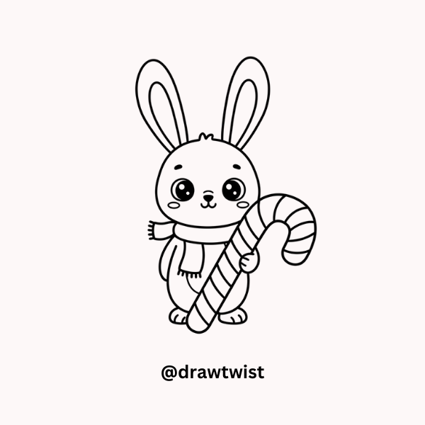Draw a bunny holding a candy cane in each paw. Add round eyes and big ears. Kids can color the candy canes with stripes and the bunny with soft pastel colors. This doodle is simple, festive, and encourages creativity.