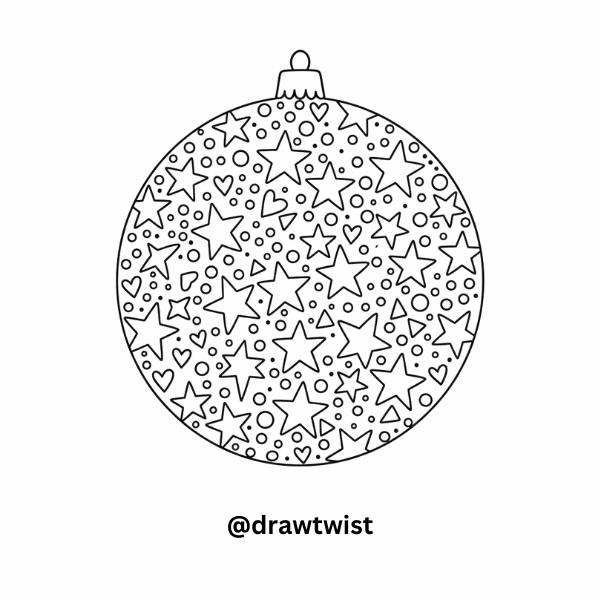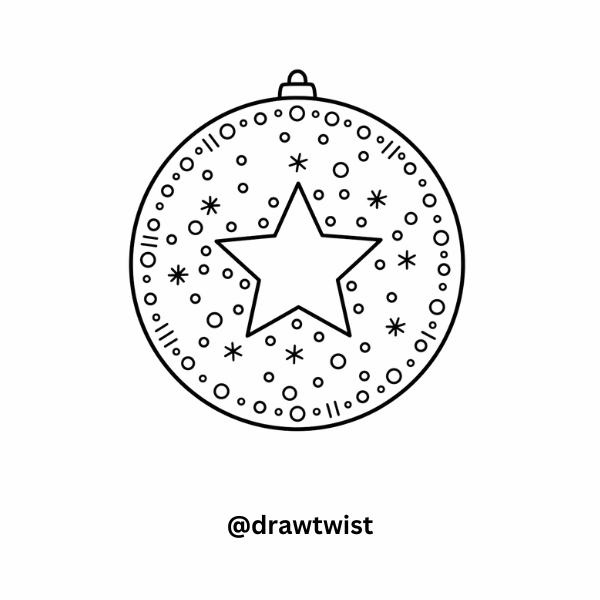 Combine a circle and a star for a simple yet fun ornament. Draw a round ornament and place a small star in the middle. Kids can color the star differently from the circle to create contrast. Add tiny dots, stripes, or snowflakes around it for a festive look. This design is easy but looks very decorative when you draw several ornaments together.