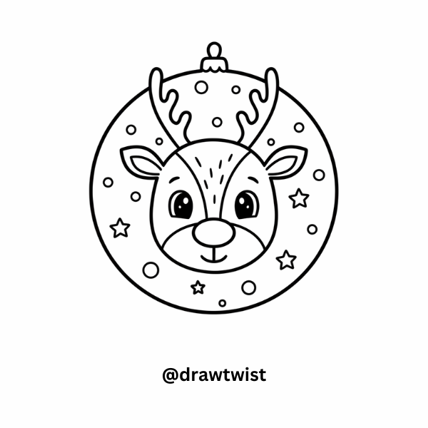 Draw a reindeer face or a full reindeer inside a circle. Add antlers and a red nose. Kids can make funny expressions or cute faces. Coloring the nose bright red makes it instantly recognizable as Rudolph. Reindeer ornaments look adorable with other classic Christmas shapes like bells or stars.
