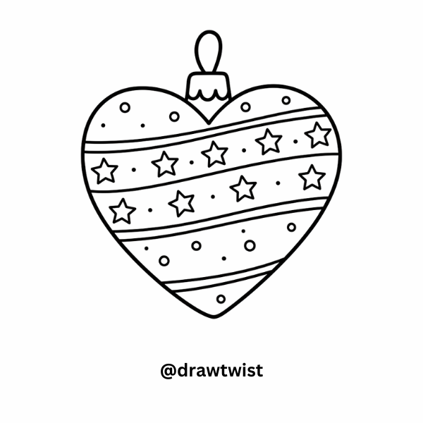 Hearts are a warm and cheerful choice. Draw a simple heart shape and add patterns inside, like stripes, dots, or small stars. Kids can color the heart in red, pink, or even gold. Mixing colors can make each heart ornament unique. You can also draw a few heart ornaments together to make a pattern. This idea works well for creating a warm, festive feeling in your doodles.