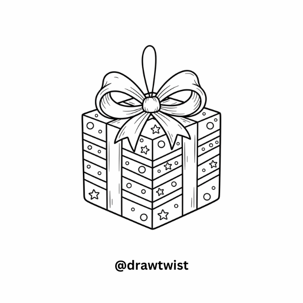 Gift boxes are fun because kids can decorate them in many ways. Draw a small square or rectangle and add a bow on top. Color the box in bright colors like red, green, or blue. Kids can also add stripes, dots, or tiny stars for extra decoration. Draw a few boxes together in different sizes. This ornament looks like presents ready to hang on your Christmas tree.