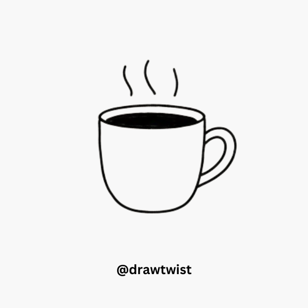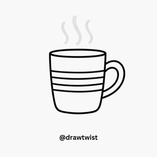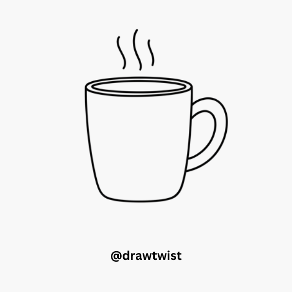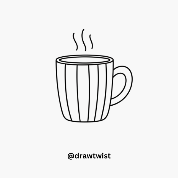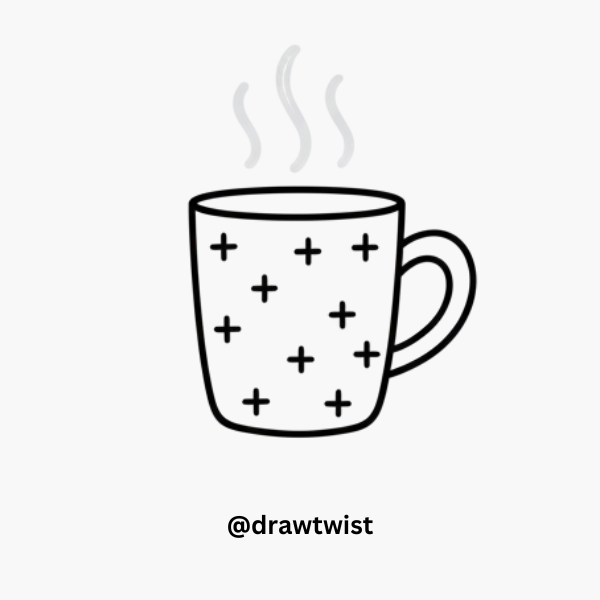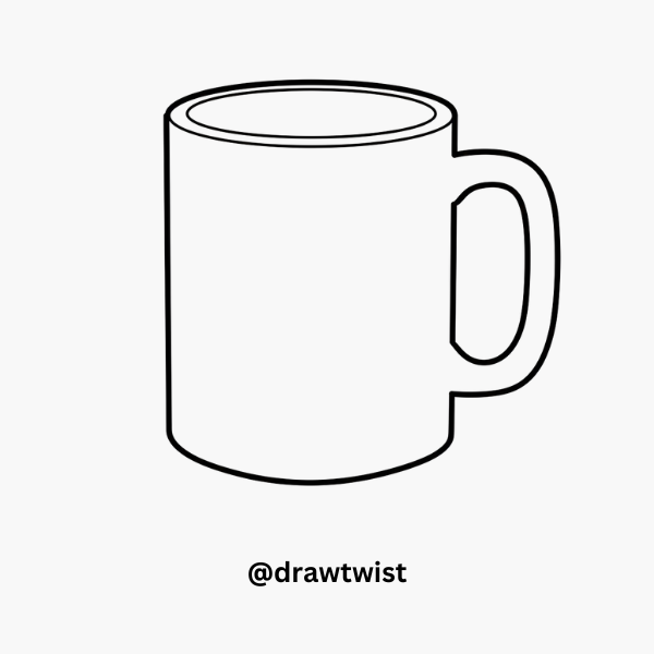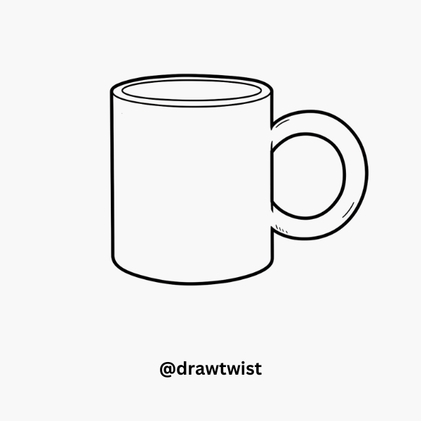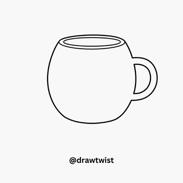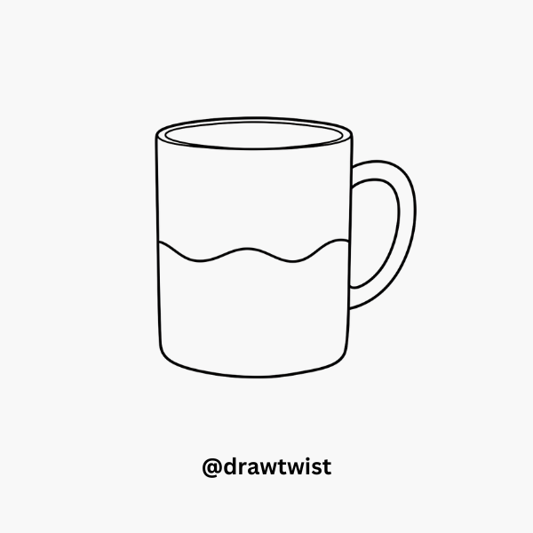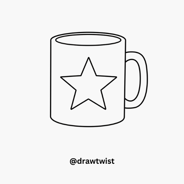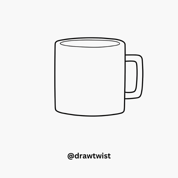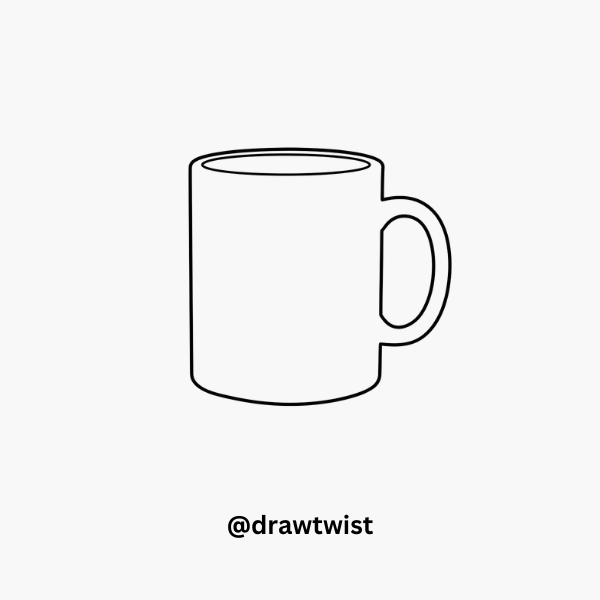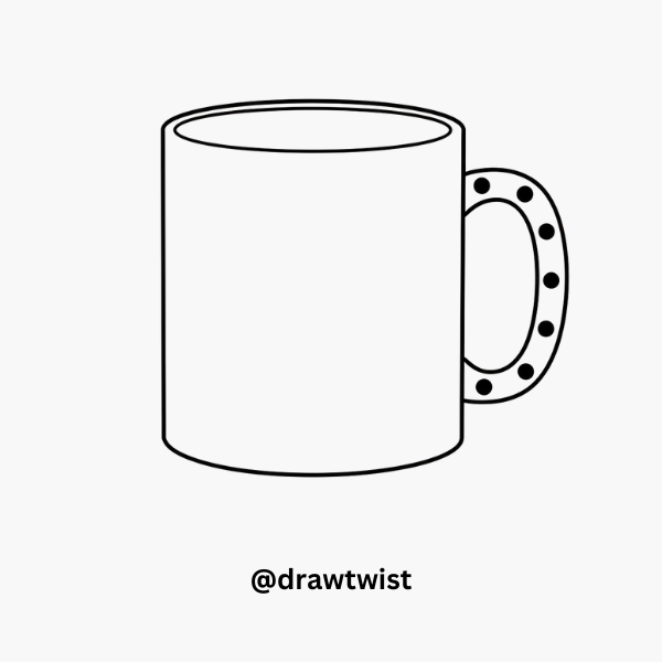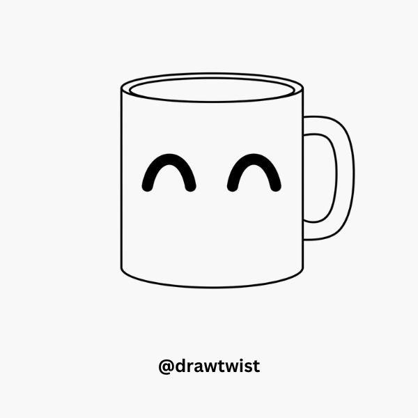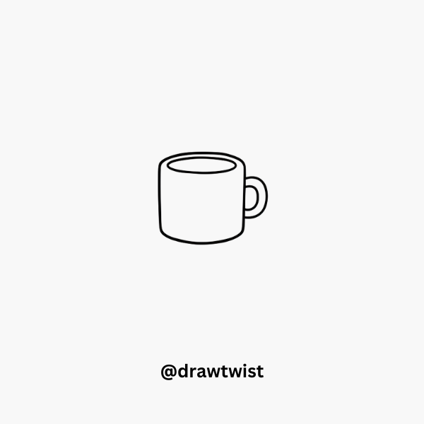 A circle mug is very basic and easy. Draw the mug using mostly round shapes. The body can be an oval or circle and the handle a small round shape. It’s perfect for kids who are just starting to draw.