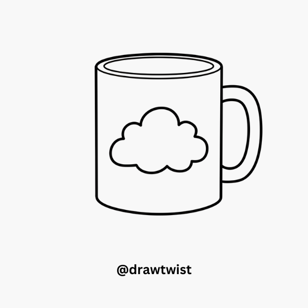 A cloud mug is soft and cute. Draw a plain mug and add one fluffy cloud shape. Kids can color the cloud light blue or white. It’s simple and encourages imagination.