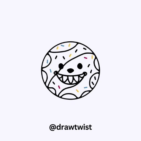 This doodle teaches kids to combine simple shapes and details. It’s perfect for practicing circles and triangles while creating something deliciously playful.