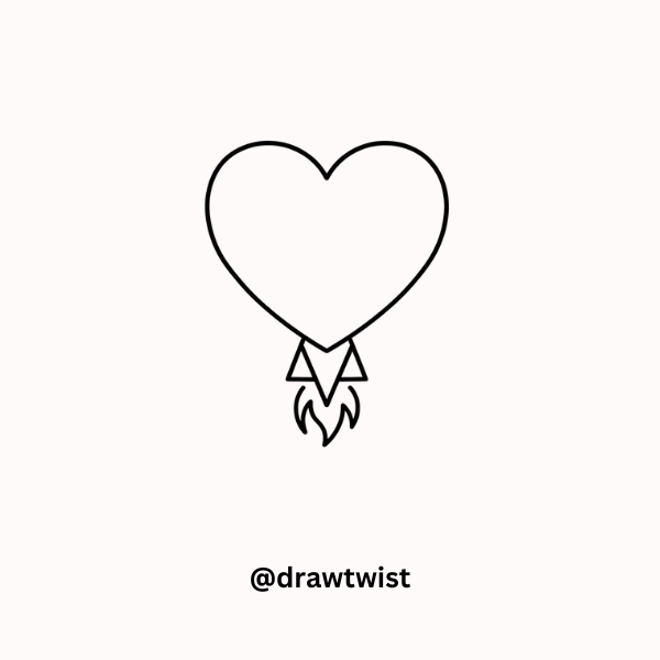A heart rocket is a heart with a small triangle at the bottom, like a rocket taking off. Kids can imagine it flying into space. This simple doodle teaches children how to combine shapes to create imaginative drawings.