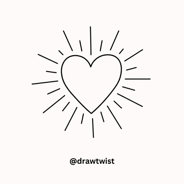 Draw a heart with little lines radiating outwards, like the sun’s rays. Kids love this because it turns the heart into something cheerful and bright. It’s simple but makes the heart look happy and lively on the page.