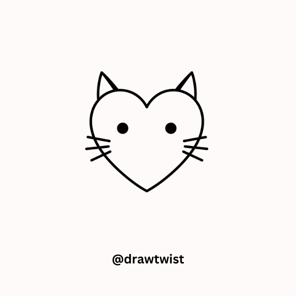 A heart cat is a heart-shaped face with small triangle ears on top. Draw the eyes and whiskers to complete it if you want. Kids love this because it turns a simple heart into a cute animal. It’s fun to mix shapes and characters.