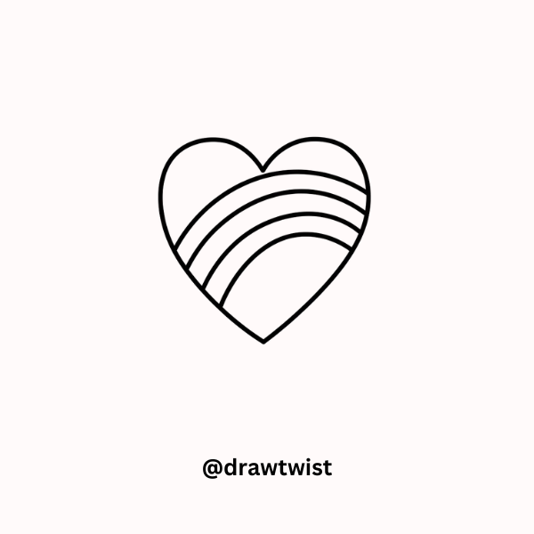 Draw a heart with 2–3 curved lines inside, like a rainbow. Kids enjoy this because it adds extra detail but remains very easy to draw. It also allows for imaginative coloring later.