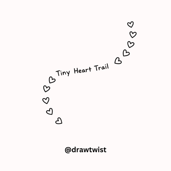 Draw tiny hearts in a row, like a trail of footsteps or a path. Kids enjoy this because it’s simple but looks like a story is being told with hearts. It’s also good for practicing small, careful movements.