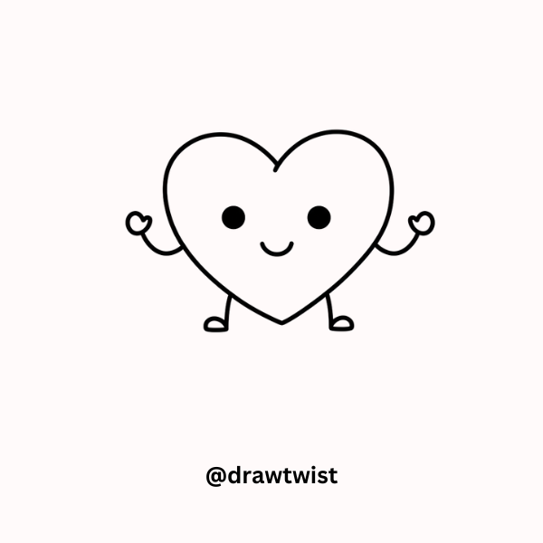 Draw a heart with little arms and a smiling face. Kids love turning shapes into characters. This doodle is playful, cheerful, and easy to draw.