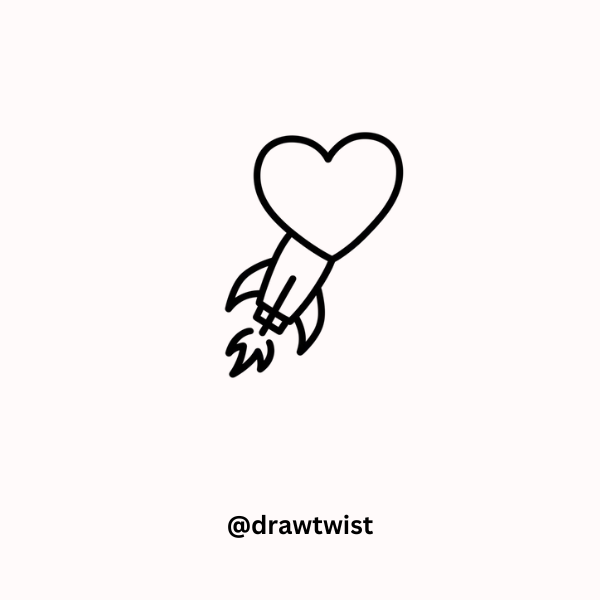 A heart with a rocket trail is a heart with a curved line or small flame shape below it. Kids enjoy imagining the heart zooming across the page.