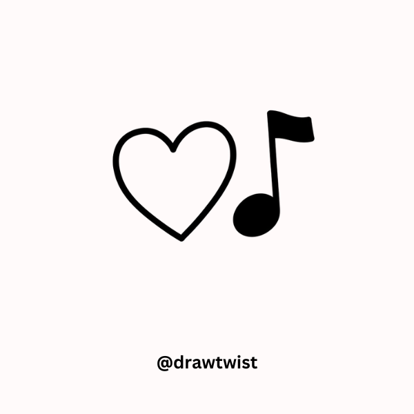 Draw a heart with a small music note beside it. Kids can imagine the heart singing or dancing. It’s simple but creative, combining shapes and symbols.