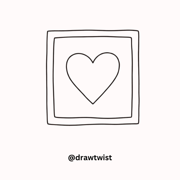 Draw a heart inside a square or rectangle frame. It makes the heart stand out and gives it a neat, structured look. Kids enjoy framed doodles because they feel like a little artwork.