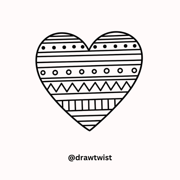 A patterned heart is a heart filled with simple designs like stripes, dots, or zigzags. Kids can get creative with these patterns and make each heart look unique. It’s a simple way to practice both shapes and decorating skills without making the drawing too hard.