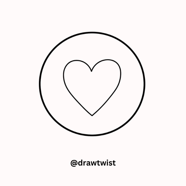Drawing a heart inside a circle is a fun way to make it look like a badge or button. Start with the circle, then draw a heart inside it. Kids enjoy this because it frames the heart and makes it stand out on the page.